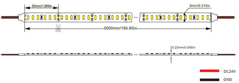首页 > LED软灯带 > 单色灯带 >   3014 8mm 单色软灯条 120LEDs/m DC24V