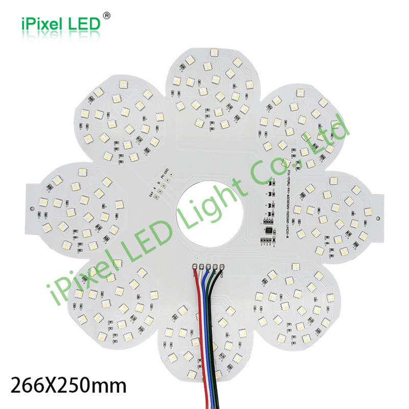 公海jcjc5500的客户定制了一个花形的LED硬屏,详细信息请参见下文: 料号:10605-0039-00 型号 :M266144CC4DC0 灯珠类型: SMD 5050 RGBW, W: 6000-6500K 灯珠数量: 144灯/pcs 控制方式: TM512AC IC 数量: 1pcs 电压: DC24V 功率: 36W PCB 尺寸: 266*250mm PCB 颜色: 白色 PCB