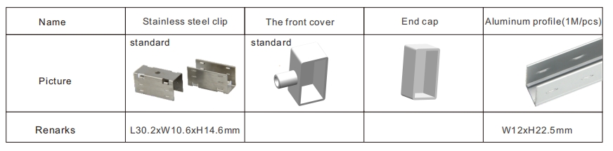 标准尺寸为5米,包括10个安装夹。