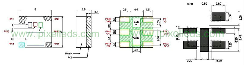 1.APA102内红、绿、蓝三色 - SMD2020尺寸(2mm x 2mm)