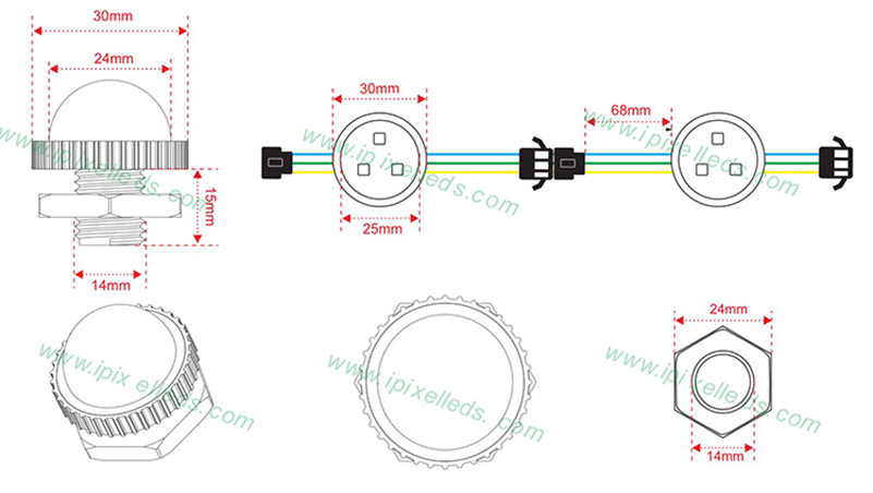 Each pixel attached a pair JST SM Connector IP20.